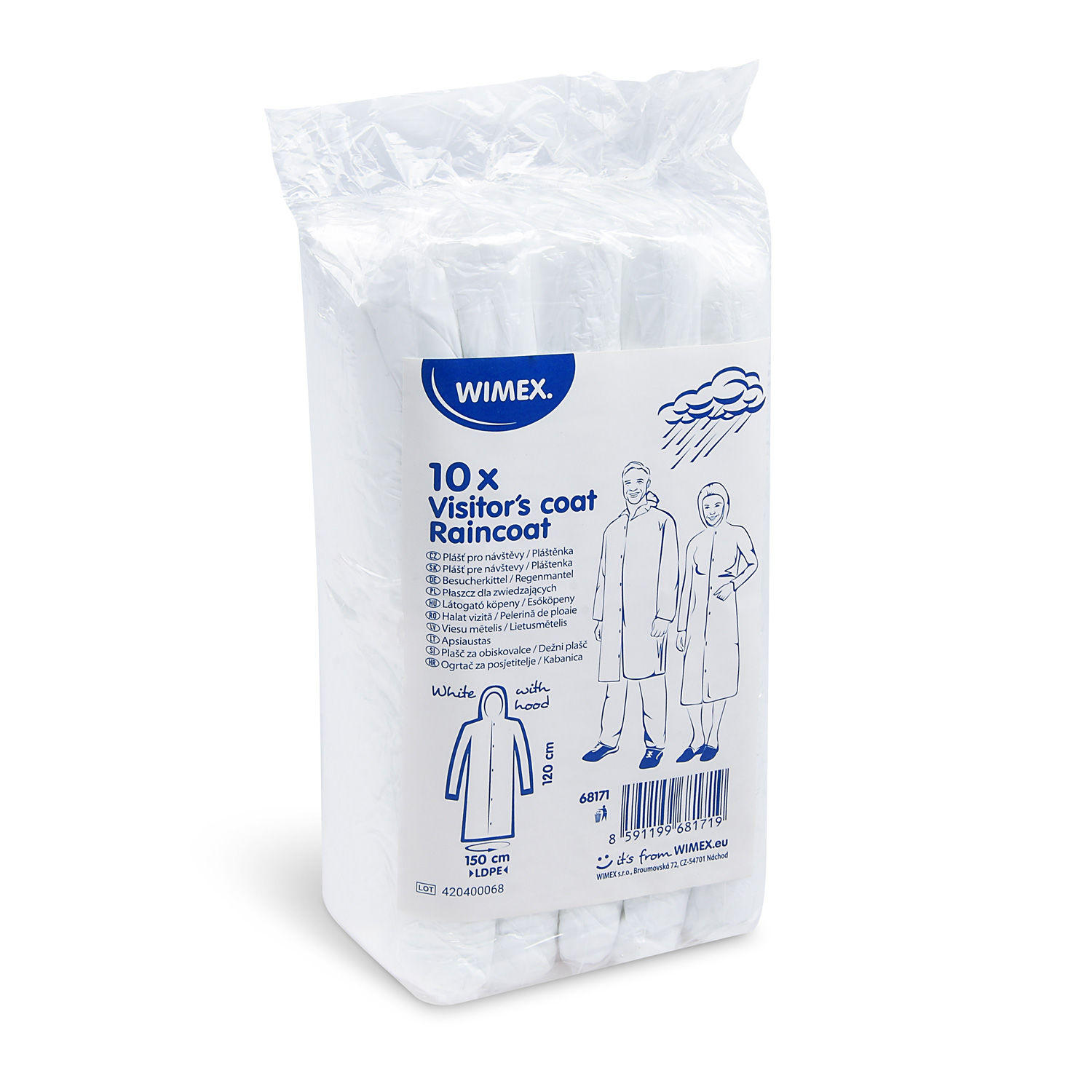 Plášť pre návštevy / Pláštenka (LDPE) s kapucou [10 ks]