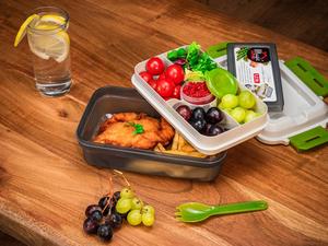 Obedár MagicHome, hranatý, 2 dielny, s vidličkou/lyžicou, 1 lit., 20,8x13,5x12,4 cm